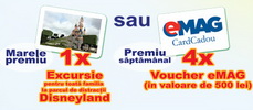 Castiga o excursie pentru toata familia la parcul de distractii Disneyland sau 4 vouchere eMAG in valoare de 500 de lei fiecare.