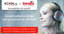 Ascultă Europa FM între 29 august – 23 septembrie, participă la concurs și poți câștiga un voucher de 200 ron pentru a-l folosi la orice laptop Acer sau calculator (desktop+monitor) cumpărat de pe Koyos.