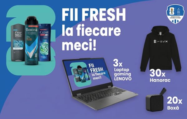 Cumpără produse Dove Men+Care, Rexona Men și Clear în valoare de minimum 30 de lei din magazinele Auchan și înscrie bonul fiscal împreună cu datele personale în formularul de concurs de pe pagina campaniei promoționale Fii fresh la fiecare meci și câștigă.