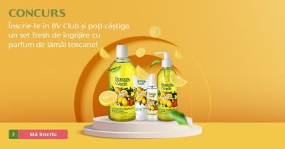 Poți câștiga prin tragere la sorți un set fresh de îngrijire cu parfum de lămâi toscane Bottega Verde care conține următoarele produse: gel de duș, cremă de corp hidratantă, parfum deodorant și săpun lichid.