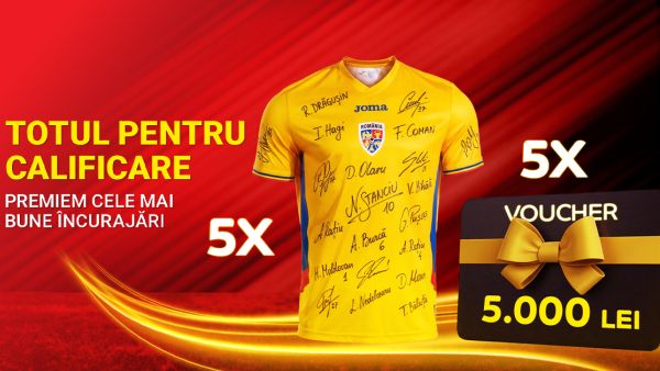 Câștigă unul dintre cele 5 vouchere multi-brand în valoare de 5.000 de lei fiecare împreună cu câte un tricou oficial de joc cu echipa Națională a României!