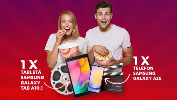 Poți câștiga prin tragere la sorți o tabletă Samsung Galaxy Tab A 10.1 Octa-Core 2GB RAM 32GB 4G Black pentru înscrierile efectuate în perioada 1 – 31 octombrie 2024 sau un telefon mobil Samsung Galaxy A25 Dual SIM 6GB RAM, 128GB 5G Blue Black pentru înscrierile efectuate în perioada 1 – 30 noiembrie 2024.