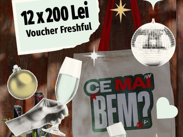 Câștigă unul dintre cele 12 vouchere de cumpărături Freshful în valoare de 200 de lei fiecare împreună cu o sacoșă din bumbac inscripționată „Ce mai bem?”!