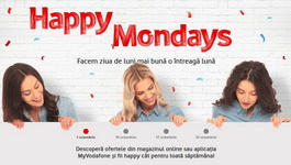 Facem ziua de luni mai bună o lună întreagă! Descoperă ofertele din magazinul online Vodafone sau aplicația MyVodafone și fii Happy cât pentru toată săptămâna!