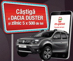 Activează-ţi M-Pesa, transferă cel puţin 30 de lei şi poţi câştiga zilnic câte 5 x 500 de lei sau marele premiu o mașina Dacia Duster!