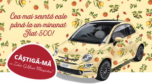 Câștigă un minunat Fiat 500, dotat cu aer condiționat, sistem multimedia cu ecran tactil și Bluetooth, design cu inserții cromate, comenzi pe volan, jante din aliaj, oglinzi electrice cu degivrare și câțiva kilometri la bord parcurși în campania de promovare.